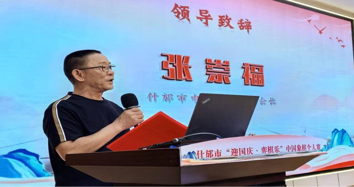 什邡市中国象棋协会会长张崇福在致辞中表示,象棋是中华文化的瑰宝,此次比赛以“庆盛世华诞 展棋艺风采”为主题,既是全民健身的生动实践,更是献给祖国生日的深情贺礼。他鼓励选手们赛出风格、赛出水平,展现棋如人生的智慧与风度。