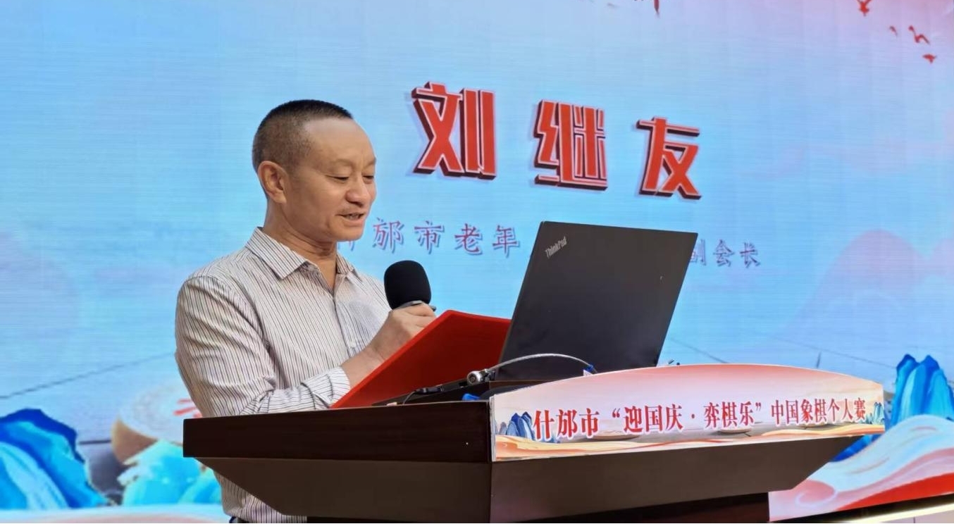 什邡市老年人体育协会副主席刘继友致辞。(什邡市中国象棋协会/提供)