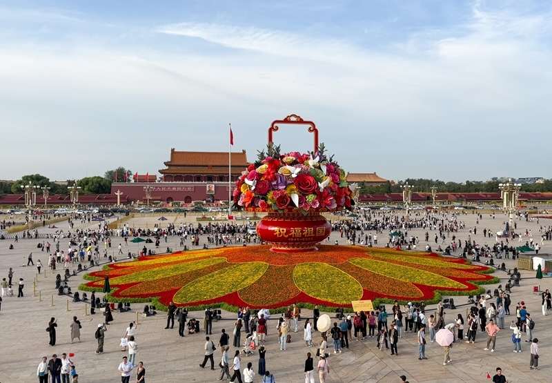 9月25日在天安门广场拍摄的“祝福祖国”大花篮。