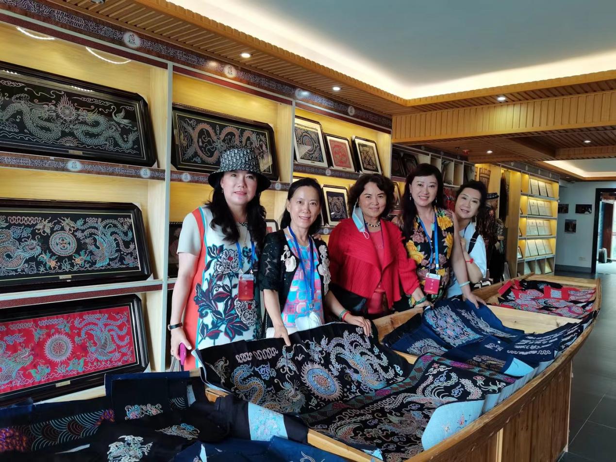 “2015年结对以后,姚会长来三都好多次,给我们带来新的设计理念和市场信息。”韦应丽说。正如韦应丽所说,东方木兰荟在姚远会长的带领下,多次前往三都马尾绣馆看望韦应丽和三都的绣娘们,即使在疫情期间也没停止。