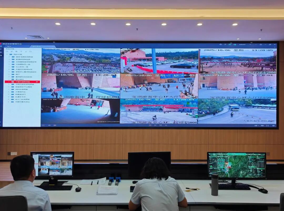 为筑牢安全屏障,安保团队联动特警、公安力量协同巡防,不间断守护景区秩序。景区指挥中心作为调度中枢持续运转,依托动态监测屏与智能监控系统,实时掌握客流动态,及时疏导核心区域,确保游览顺畅舒适。