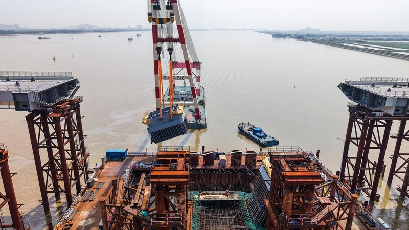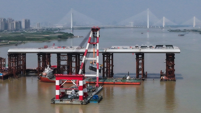 10月10日,由中铁建大桥局承建的万龙大桥吊装架设首节段主塔。位于广州南沙区的万龙大桥跨越珠江口龙穴南水道,全长5146米,主桥长1150米,主跨608米,为粤港澳大湾区又一世界级桥梁。