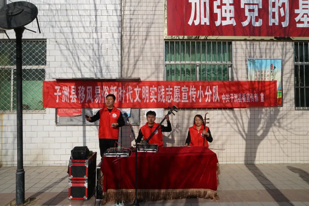 “过去,说书内容多是帝王将相、才子佳人。现在我们组织艺人创作新唱本,将勤俭节约、孝老爱亲、婚事新办等文明新风尚编写成朗朗上口的唱词,用乡亲们听得懂、记得住、喜欢听的方式唱出来。”子洲县新时代文明实践中心负责人介绍。为此,子洲县积极开展移风易俗文艺作品征集,组织说书艺人和文艺工作者深入基层,了解群众身边的真实案例,创作了《移风易俗进万家》《厚养薄葬新风传》《山乡新韵》《山圪崂崂天地拜》等四十余部新编书目,并组建了多支“移风易俗说书志愿服务队”深入村镇巡回演出。