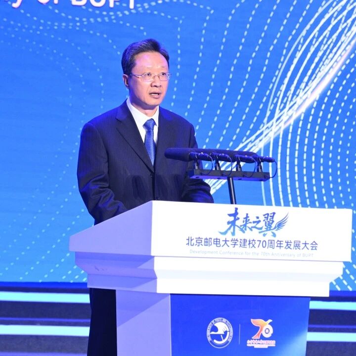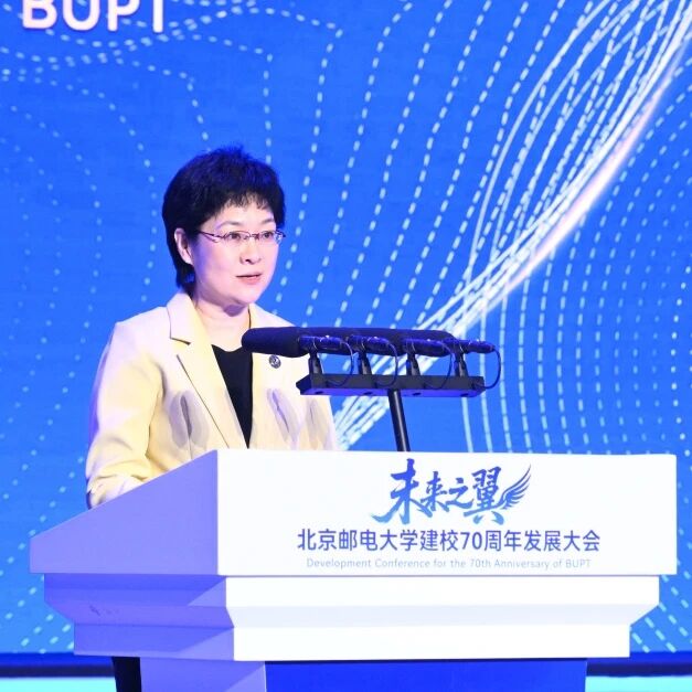 于英杰代表北京市委市政府向学校全体师生员工和广大校友致以热烈祝贺。他表示,70年来北邮为服务国家重大战略、支撑北京“四个中心”建设、推进我国高等教育改革和信息通信事业发展作出了重要贡献。希望北邮持续发挥标杆引领作用,进一步深化改革,在落实立德树人根本任务上展现新作为;加强有组织科研,在推进教育科技人才一体化发展上实现新突破;发挥优势助力国际科创中心和全球数字标杆城市建设,在服务国家战略和首都发展上作出新贡献。他表示,北京市将一如既往支持学校发展,着力在教育强国建设中展现新担当、实现新跃升。