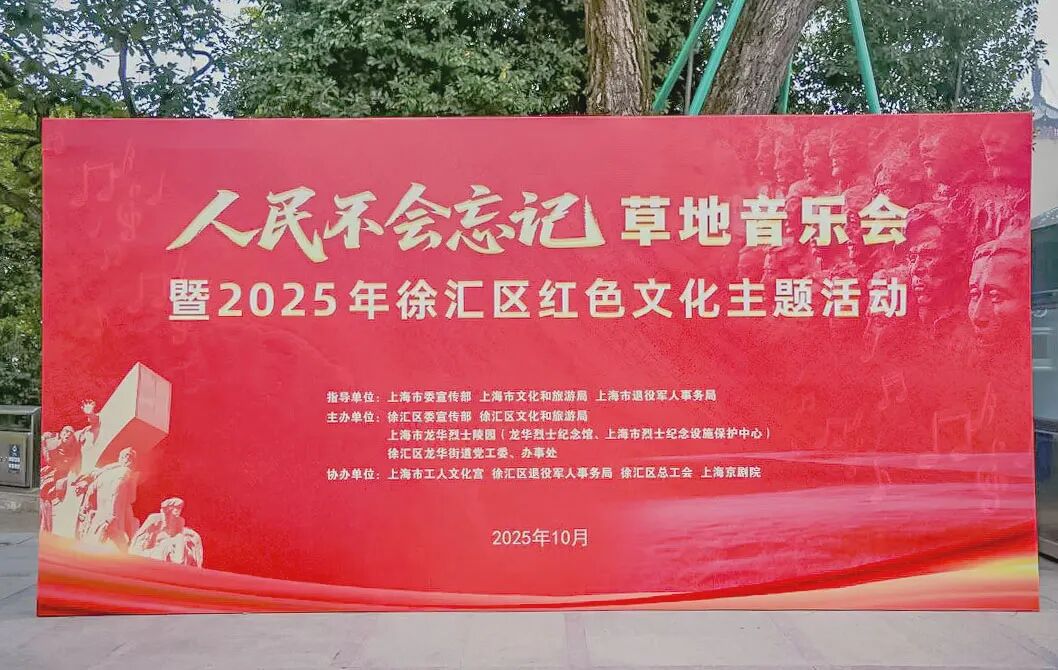 10月14日,上海市龙华烈士陵园(龙华烈士纪念馆、上海市烈士纪念设施保护中心)联合徐汇区委宣传部、区文化和旅游局、龙华街道,在龙华烈士陵园青少年活动广场共同举办“人民不会忘记”草地音乐会暨2025年徐汇区红色文化主题活动,以多元形式传承龙华精神、弘扬红色基因。