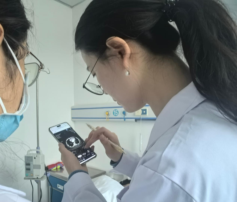 延川二院的影像科,承担着周边6个乡镇近6万群众的检查需求,虽配备了CT、DR等专业设备,但在影像报告规范书写、复杂病例综合分析、急危重症快速影像评估等方面仍有提升空间。帮扶期间,王珊细心分析每一个病例的影像学征象,帮助当地医生精确诊断典型病例,遇到非典型病例时提示进一步的检查方向。