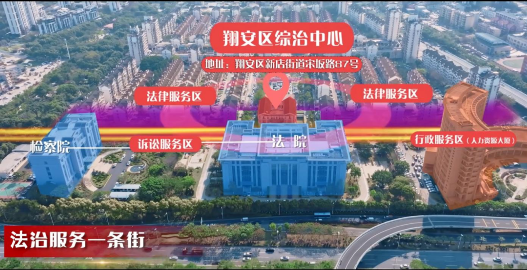 在翔安区宋坂路核心地段,一条不足500米的街道上,以区综治中心为基点,聚集了法院、检察院、司法局等政法单位及十余家行政职能部门,周边的13家律师事务所、公证处也坐落于此,形成紧密协同的“法治一条街”,已成为化解矛盾的“黄金地段”。