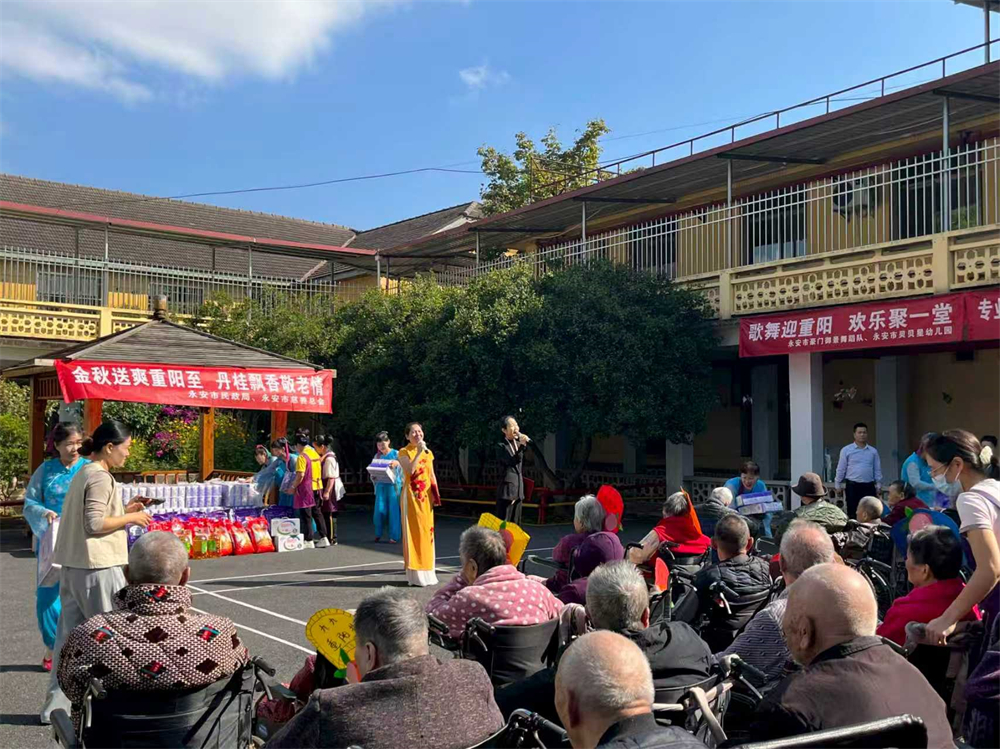 10月29日,国网永安市供电公司志愿者们与永安市民政局、永安市慈善总会等多个组织,为永安市沁园老年公寓的老人们精心打造了一场重阳节文艺汇演,以丰富多样的节目形式营造浓厚节日氛围,为老人们送去暖心祝福。