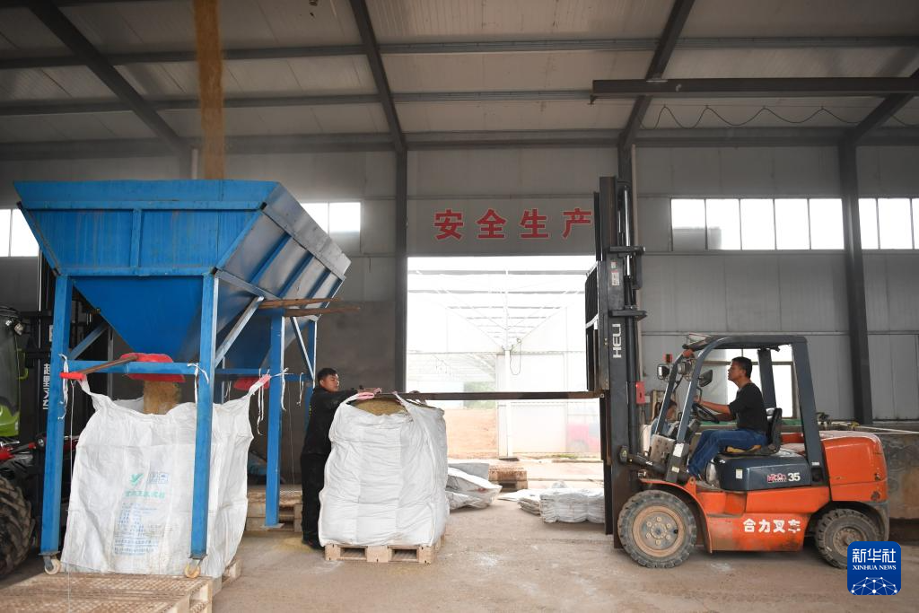 10月30日,邱彬将烘干后的稻谷装袋。新华社记者 陈振海 摄
