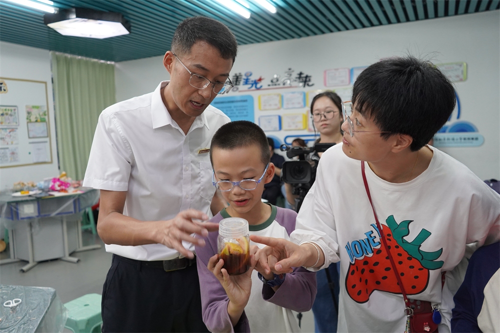 实践环节更是精彩纷呈。孩子们在科研团队的带领下,分组开展柚果品鉴、创意手工和酵素制作等实践活动。大家亲手触摸、仔细观察、动手制作,在实践中深化了对生态循环和资源利用的理解。活动现场洋溢着浓厚的科学探索氛围。