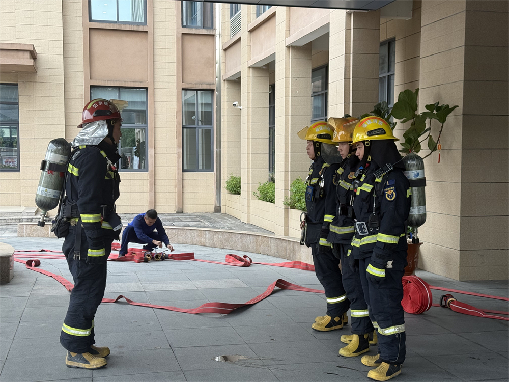 实战演练模拟本部楼层因电气线路老化引发火灾的突发场景。在消防大队指挥员的统一调度下,公司消防应急小分队迅速响应、分工协作:一组人员佩戴空气呼吸器、携带干粉灭火器赶赴着火点,实施精准扑救,有效控制火势蔓延;二组人员同步切断周边非必要电源,防止触电事故;三组人员引导现场人员沿预设路线有序疏散,确保“不漏一人”。演练全过程紧贴实战,各环节衔接顺畅,充分检验了应急预案的可操作性和人员协同响应能力。