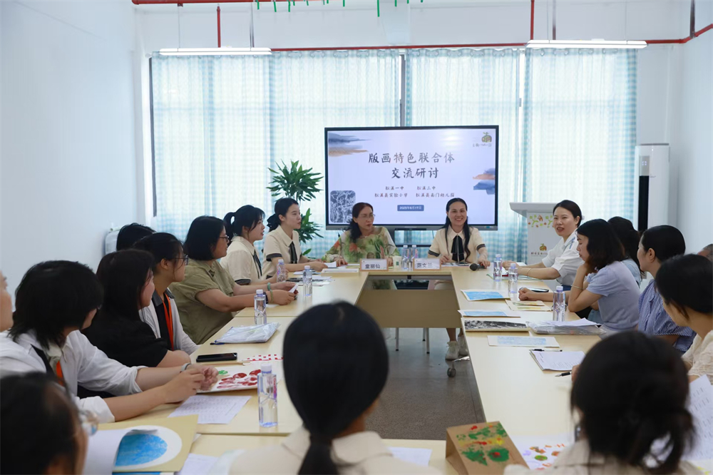这一跨学段联动场景,是松溪县教师进修学校推动教研改革的鲜活缩影。作为县域教研的“总引擎”,该校今年创新推行“1+N”教研机制,即以1所龙头校带动N所成员校,通过片区联合与跨学段特色教研,实现“1+1>2”的聚合效应。其中,由一中、三中、实验小学与南门幼儿园组成的版画特色教研联合体,已成为美育贯通育人的典范。