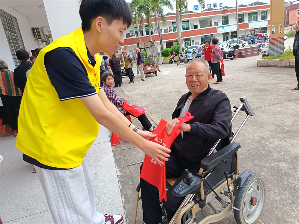 普法之外更有温情。活动现场,工作人员与志愿者不仅为参与活动的老人们发放了《老年人权益保障法》《反电信网络诈骗法》《民法典》等普法宣传彩页200余份,还送上了印有法治宣传标语的购物袋等生活用品100余份,让法治宣传更具实用性。对于行动不便的残疾老人,工作人员还主动上门走访,送上温暖问候与慰问礼品,在细致解答法律疑问的同时,传递社会关怀,让特殊老年群体也能感受到法治的温度与节日的暖意。