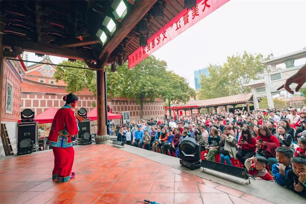 古厝巷道的转角处,常有文化惊喜悄然降临:南音的婉转曲调从茶馆溢出,状元戏台前,非遗舞狮的鼓点总能聚拢人群。2024-2025年,南音、掌中木偶、高甲戏(柯派)等3个国家级非遗项目常年在此演出,累计开展演出超1900场;每周二至周日的常态化舞狮表演,每场均吸引众多观众驻足。没有刻意划分的舞台,文化便藏在日常烟火里,游客偶然驻足,便能与闽南艺术撞个满怀。