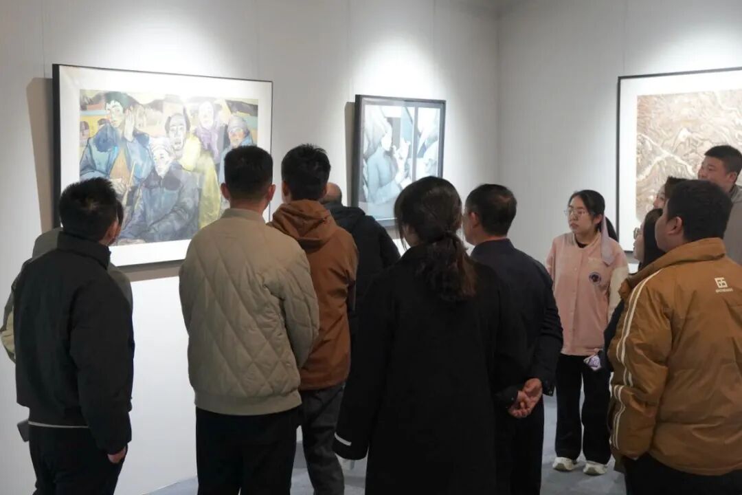 展览现场,一幅幅以黄河为核心主题的作品,用细腻笔触、丰富色彩勾勒出母亲河的壮阔风光、沿岸的人文风情与时代变迁,全方位展现了黄河文化的深厚底蕴与精神内核。干部们有序参观,时而驻足凝视画作中色彩晕染的层次、构图布局的巧思,时而轻声交流观展感悟,探讨水彩艺术中“自然之美”与“人文之韵”的融合之道,在沉浸式体验中接受审美熏陶,提升美学认知。