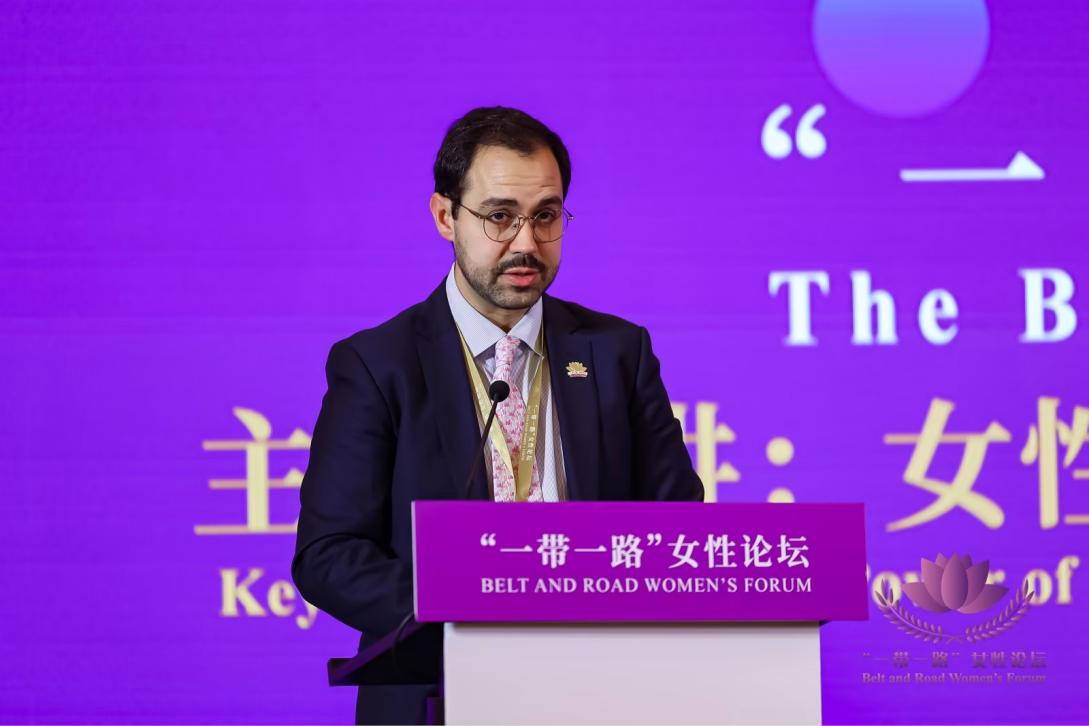 哥伦比亚驻华参赞丹尼·梅萨重点介绍了哥伦比亚具有里程碑意义的《女性主义外交政策》。该政策以和平主义、参与主义和交叉主义为核心原则,将性别平等置于国际事务中心。他分享了女性在哥伦比亚“全面和平”进程中的关键作用,指出政府正与包括中国在内的国际伙伴合作,确保女性在和平谈判与社区重建中拥有决策权。参赞特别赞赏中国近期设立的1亿美元南南合作基金及全球妇女能力发展中心等举措,认为这与哥伦比亚的妇女赋权愿景高度契合。他呼吁各国通过教育、创新与团结,共同推动女性在和平与发展中发挥领导作用。