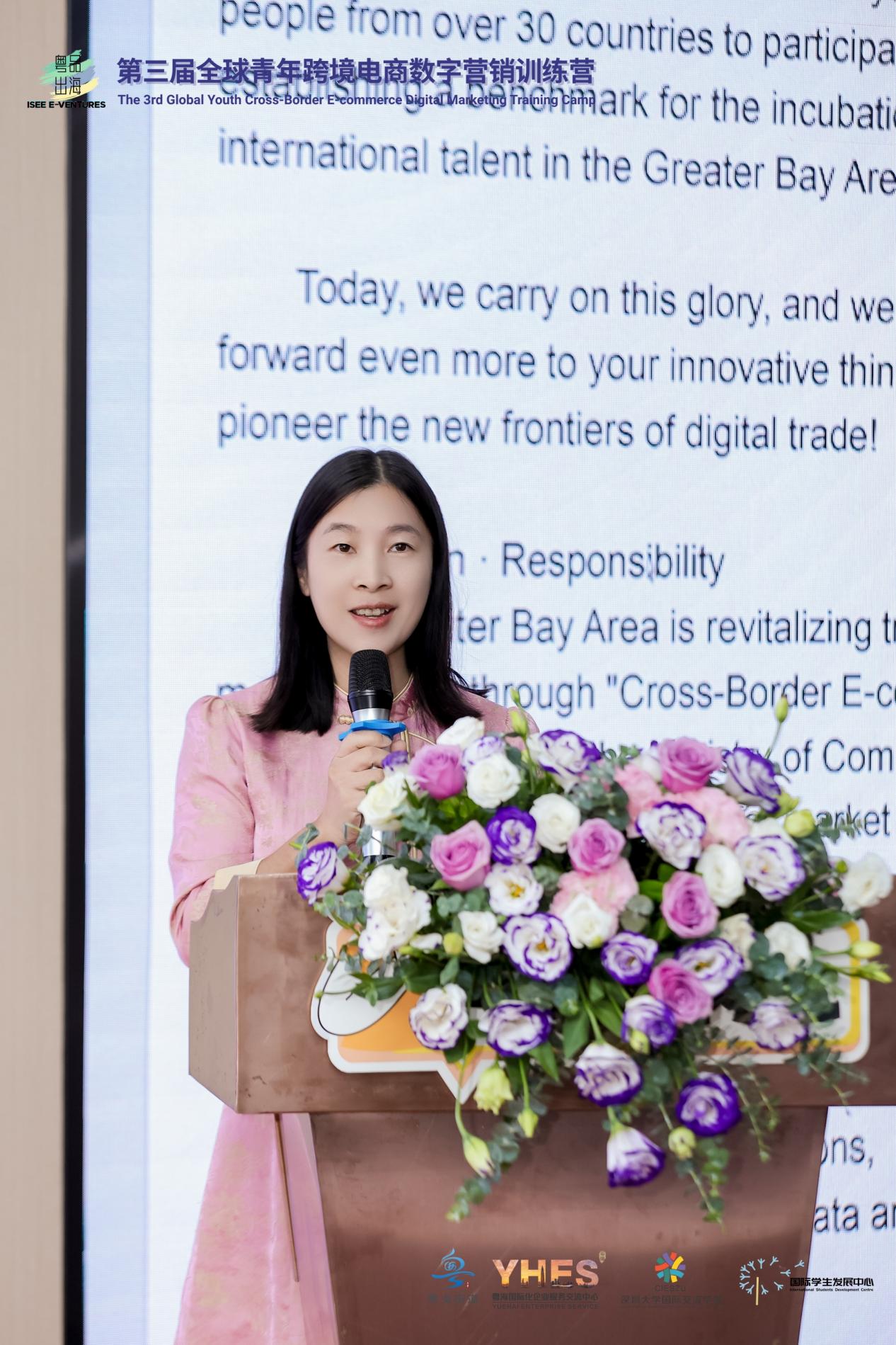 深圳大学国际交流学院副书记秦晴在致辞中,以“传承·创新、使命·担当、展望·赋能”勉励学员。她强调,跨境电商不仅是全球经济一体化的重要引擎,更是新时代青年“讲好中国故事、传播粤品魅力”的关键平台。