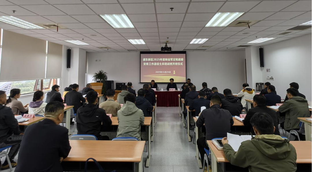 11月24日,上海市浦东新区2025年度转业军官和政府安排工作退役士兵适应性培训班开班仪式在区委党校顺利开班,25名计划安置转业军官和8名政府安排工作退役士兵参加培训。浦东新区退役军人事务局安置就业处(思政权益处)主要负责同志作开班动员,区委党校相关负责同志出席开班仪式并讲话,仪式由区退役军人服务中心主要负责同志主持。
