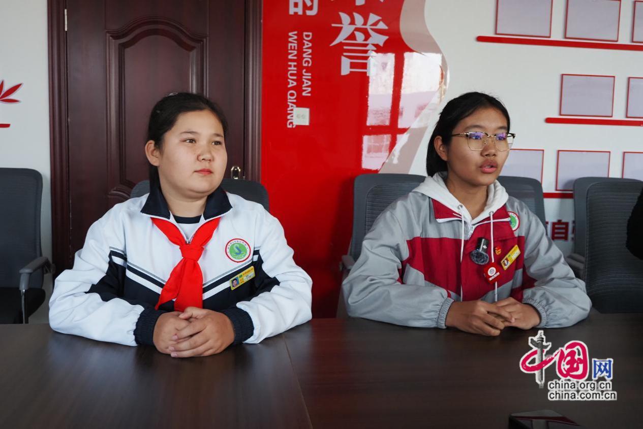 吉木萨尔县三中学生包热(左)和迪娜(右)分享自己和厦门援疆老师的故事 中国网记者曹川川/摄
