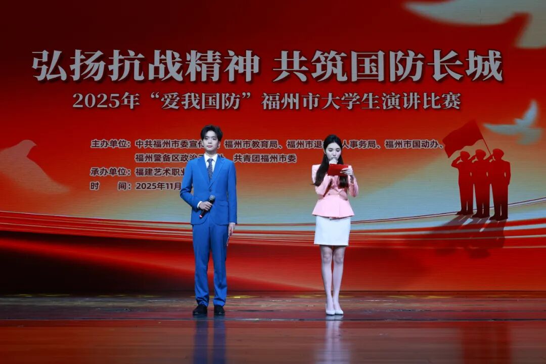 11月26日下午,2025年“爱我国防”福州市大学生演讲比赛在福建艺术职业学院举行。本次比赛由市委宣传部、市教育局、市退役军人事务局、市国动办、福州警备区政治工作处、共青团福州市委主办。