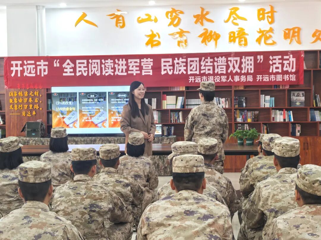 为深入推进全民阅读走深走实,扎实巩固军政军民团结,铸牢中华民族共同体意识。近日,开远市退役军人事务局牵头联合市图书馆,走进驻开某部开展“全民阅读进军营 民族团结谱双拥”系列活动。