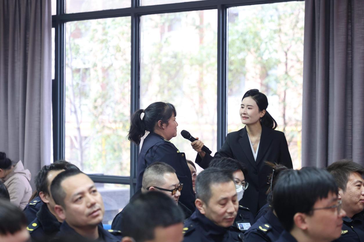 分享环节后,互动答题环节精彩开启。主持人念出经典唐诗上句,现场干部职工踊跃应答,“洛阳亲友如相问,一片冰心在玉壶”“谁言寸草心,报得三春晖”“先天下之忧而忧,后天下之乐而乐”等诗句不绝于耳,每一句诗词都与家风美德相映,既重温了经典文化魅力,更传递了对家国情怀、责任担当的共同追求,答对的职工还获赠了文明好礼,现场氛围热烈温馨。