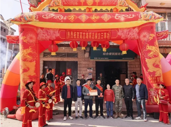 慰问组先后到杏莲村、上都村看望“三等功臣”及军属,并为功臣和军属代表佩戴“三等功臣”光荣绶带、送上立功喜报,感谢军人为家乡争光添彩、赢得荣誉,并向军属为国家培养优秀人才、支持国防和军队建设致以崇高敬意,鼓励军人珍惜荣誉、再创佳绩。军属代表纷纷表示,将继续鼓励军人扎根军营、担当尽责,不负家乡厚望与人民重托。