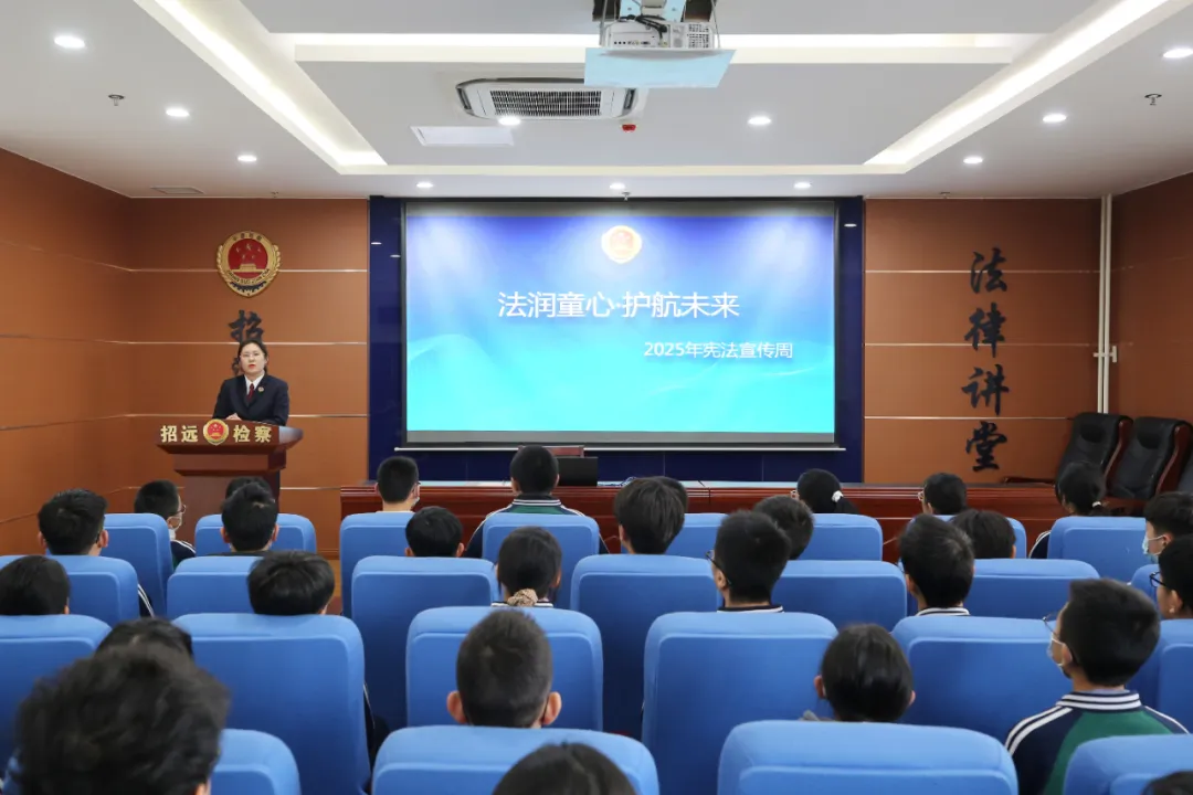 为弘扬宪法精神,增强青少年法治意识,12月1日,招远市人民检察院开展了以“法润童心·护航未来”为主题的宪法宣传活动,为招远市魁星学校初二师生送上了一堂生动实用的法治“大餐”。