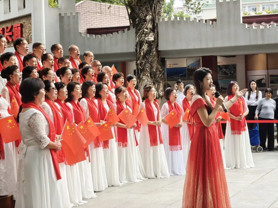 随后,广州虹虹合唱团唱响《没有共产党就没有新中国》《永远的红色》《我和我的祖国》。