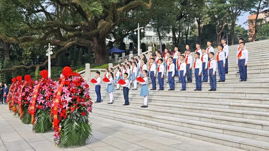 12月11日上午,纪念仪式在广州起义纪念碑前庄严开始。全体人员齐唱国歌后,中山三路小学40多名学生代表集体献词《英雄》,稚嫩而坚定的声音表达对英烈的崇敬。