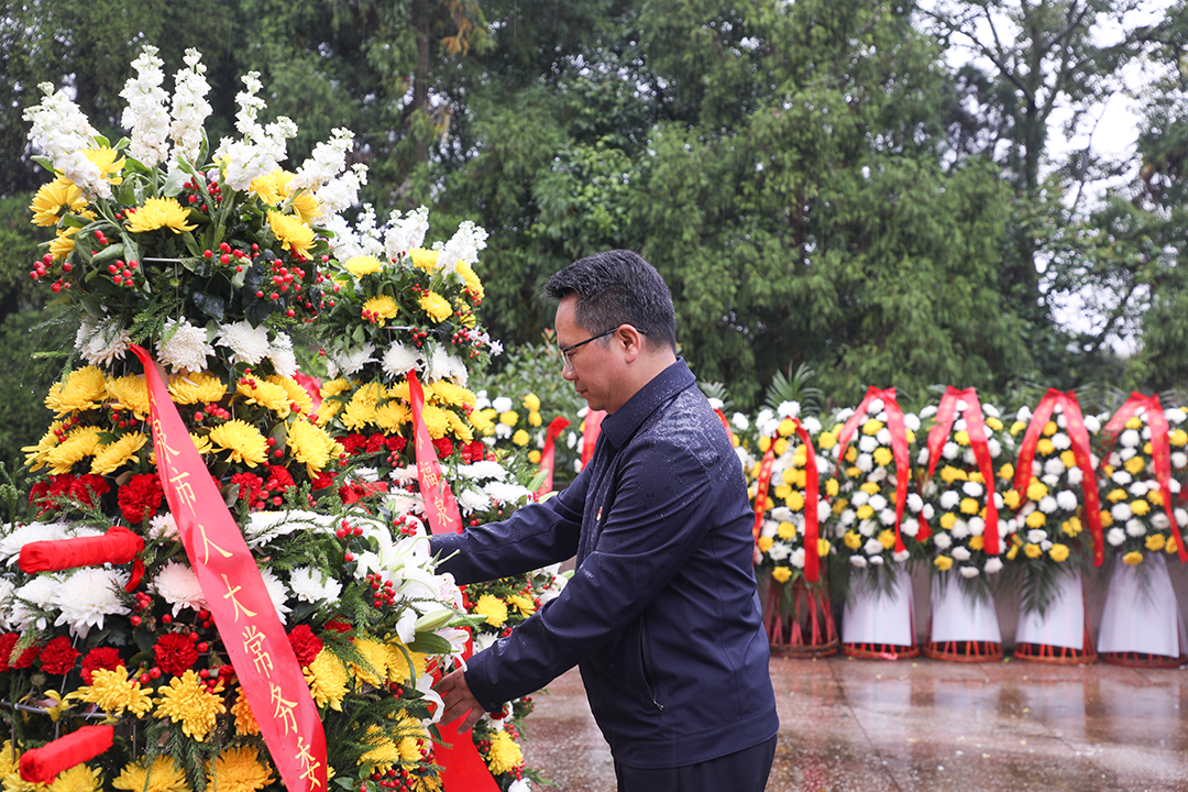 伴随着深情庄重的《献花曲》,8名礼兵托起花篮,迈着铿锵有力的步伐,正步走向革命烈士纪念碑,向革命烈士敬献花篮。怀崇敬之情,行肃穆之仪,吴义宁缓步走到花篮前,认真整理花篮缎带,向革命烈士致以崇高的敬意和深切的悼念。参加活动的市领导及各界代表等上前向英勇牺牲的革命烈士们三鞠躬,并依次献花,瞻仰革命烈士纪念碑,深情缅怀革命烈士的不朽功绩。