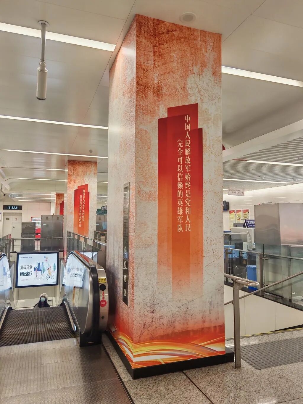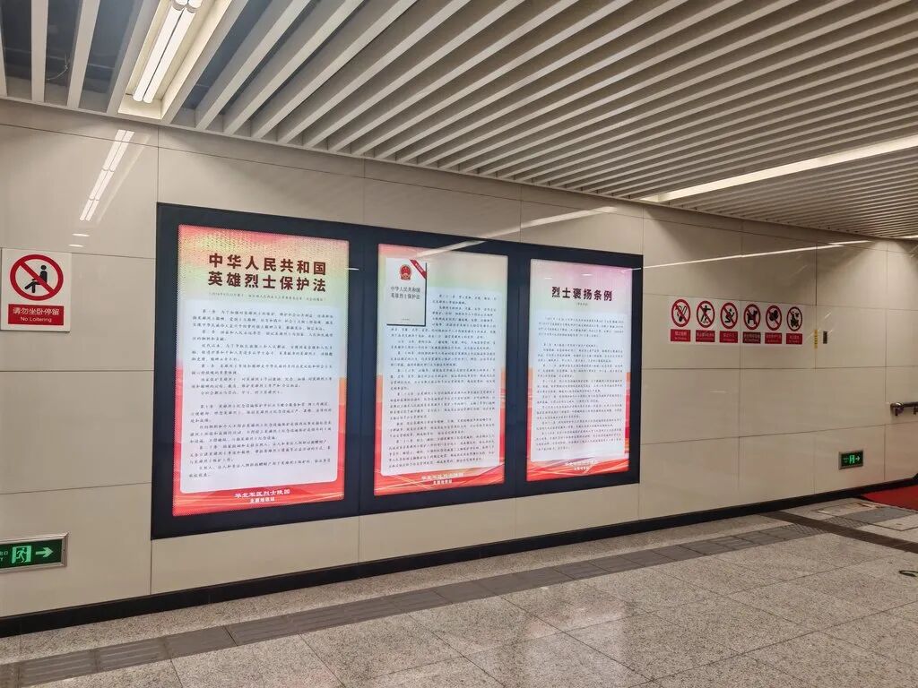 英烈主题地铁站设在石家庄地铁1号线烈士陵园站。站内特别设置临展区域,以清晰的脉络、翔实的内容,系统展示了国家烈士褒扬相关法律法规,并介绍了河北省26处国家级抗战纪念设施、遗址的概况等。展览集中呈现了河北省深厚的革命传统与丰富的红色资源,为公众日常瞻仰学习、开展主题教育提供了便捷的平台。