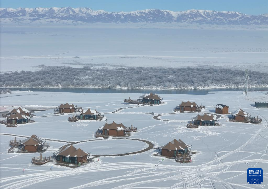 这是1月3日在新疆昭苏湿地公园拍摄的一处营地(无人机照片)。新华社记者 胡虎虎 摄