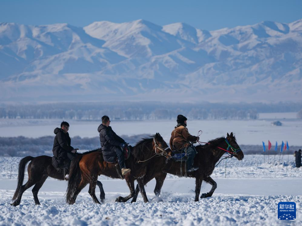 1月3日,牧民在新疆昭苏湿地公园为游客表演。新华社记者 胡虎虎 摄