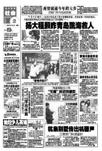 2003年3月4日,《扬州晚报》以《扬大程颢昨青岛跳海救人》为题,报道了这位年轻人的故事。当年的大学生,如今身在何方?又走过了怎样的人生旅程?近日,记者进行了回访。