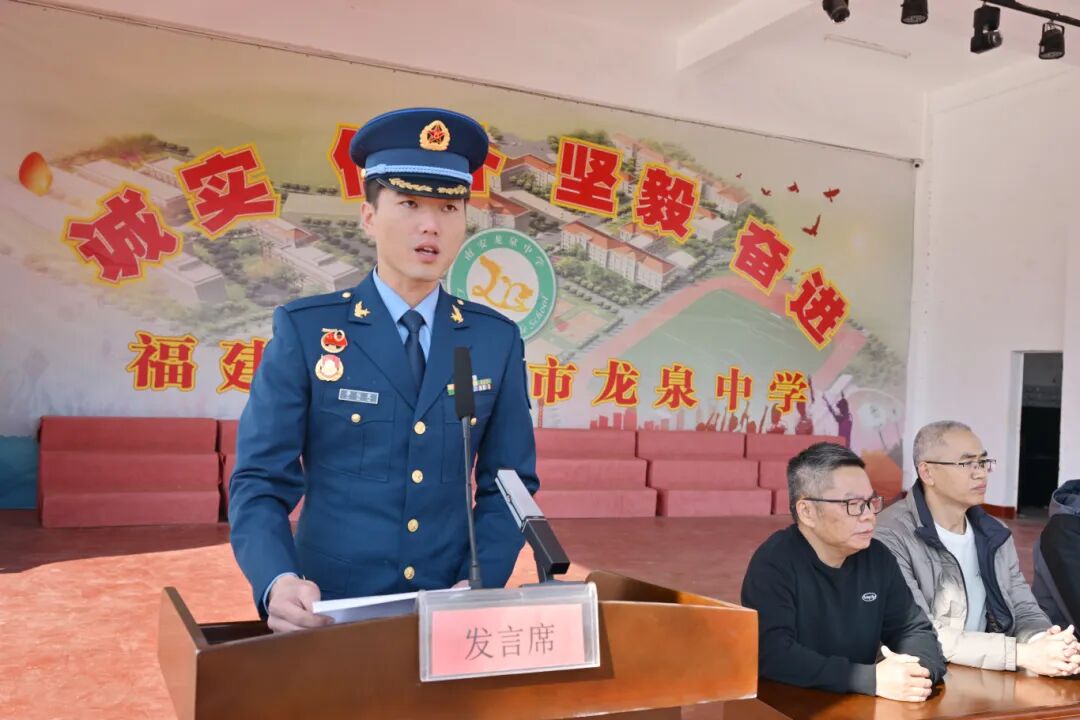 元旦余温未散,冬日校园暖意融融。近日,南安市龙泉中学隆重举办优秀校友李佳发阅兵纪念品捐赠仪式。龙泉中学优秀校友李佳发,李佳发校友的父亲李雷振,园美村党总支书记李蜀涛,园美村党总支副书记李颖刚,园美村党总支组织委员李春挺,龙泉中学副校长李清新、黄长庆与师生齐聚一堂,共同见证这场兼具爱国教育与励志传承意义的盛会。仪式由政教保卫处主任陈守进主持。