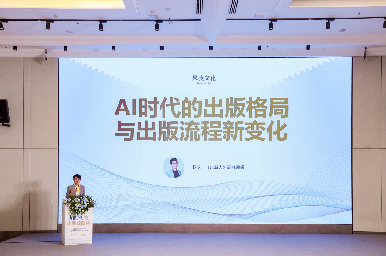 活动开始,《出版人》杂志副总编辑杨帆率先带来“AI时代的出版格局与出版流程新变化”主题分享。他指出,国际头部出版机构已将AI作为结构性升级的抓手,从内容公司向知识基础设施公司转型,其核心路径包括内容数据化、AI流程嵌入和平台生态化三大方向。杨帆强调:“对出版而言,AI不是要取代内容的价值,而是要重写内容被生产、被验证、被分发、被经营的方式。让AI被出版驯化,成为我们机体中日常的一部分。”