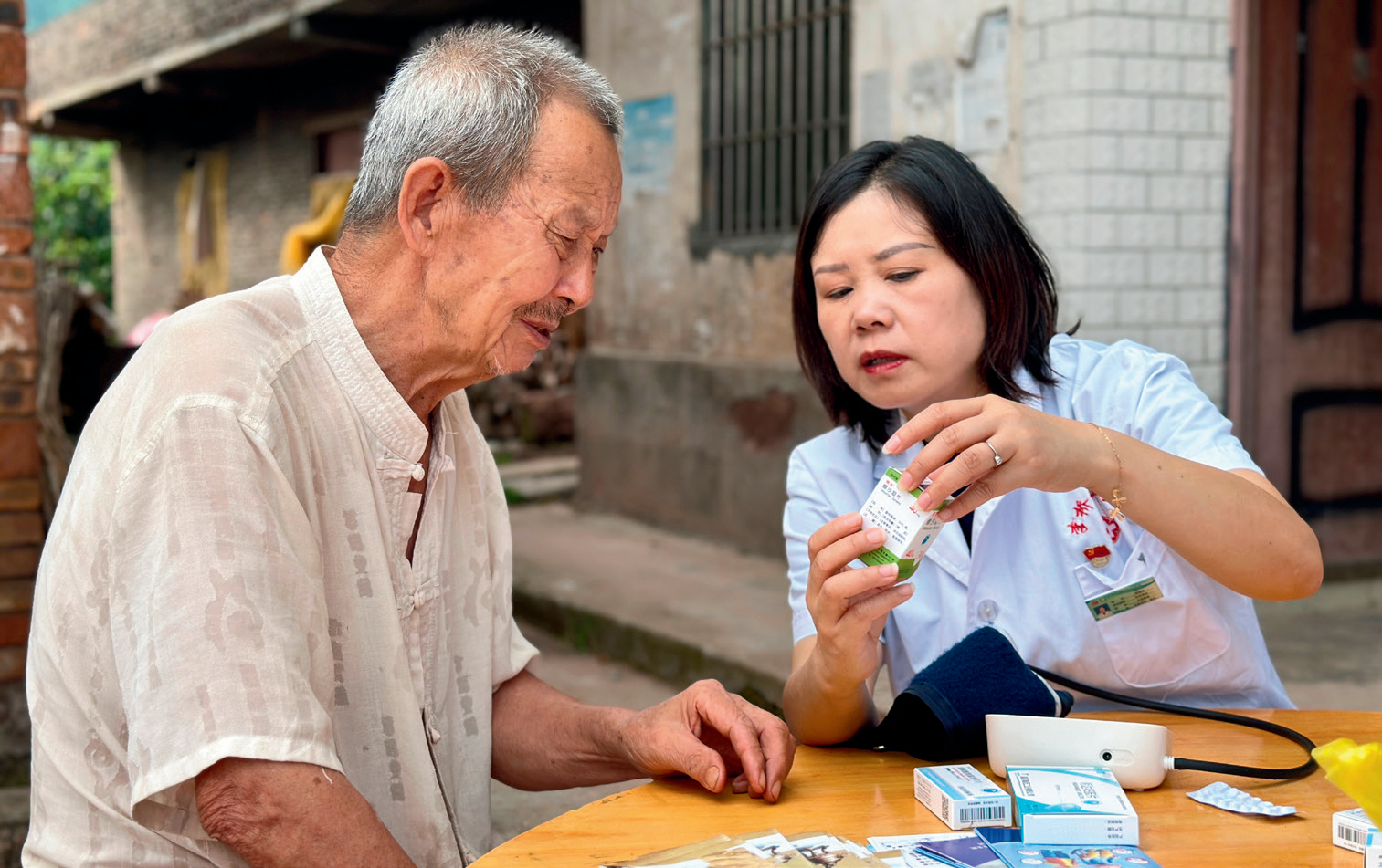 李桥镇卫生院“健康书记”罗财珍为村民提供用药指导服务。供图/富顺县卫生健康局