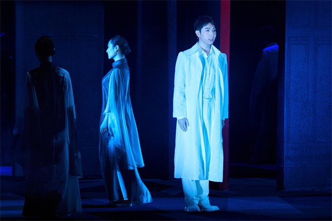 在艺术呈现层面,该剧以京韵革新构建全新观演体验。音乐创作上,北京曲剧功勋作曲家戴颐生以北京曲剧传统单弦牌子曲为基础,实现“一人一腔”,结合传统与西洋乐器混编,开篇庙堂合唱与结尾女声伴唱形成呼应,高潮段落极具震撼力;舞美借鉴“一桌二椅”传统,以几何立体框架搭配旋转舞台,半透明纱幕通过光影传递人物心绪;灯光以冷暖色调区分场景氛围,服化道精准还原民国风格,通过材质、纹路等细节区分人物身份,歌队身兼置景与表演双重身份,全方位营造沉浸感。