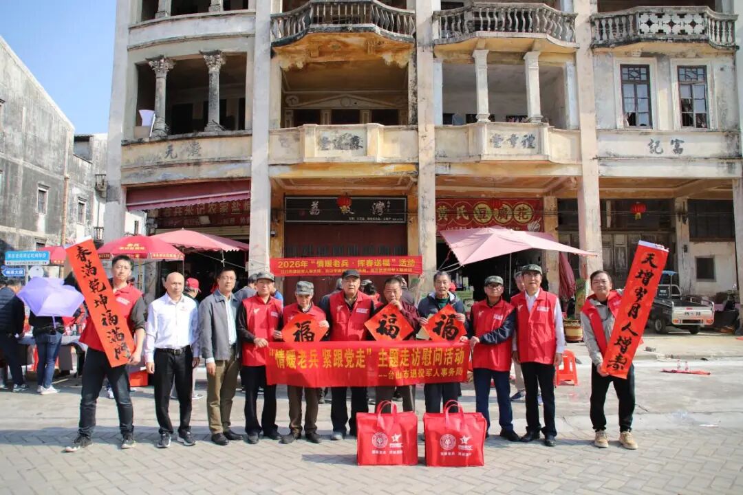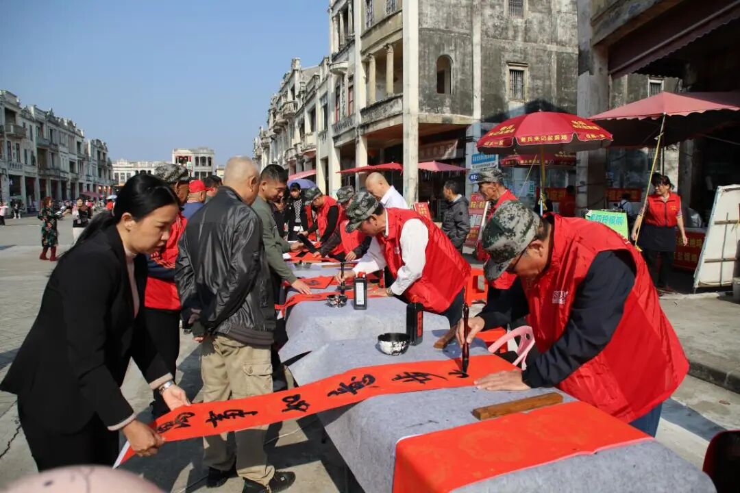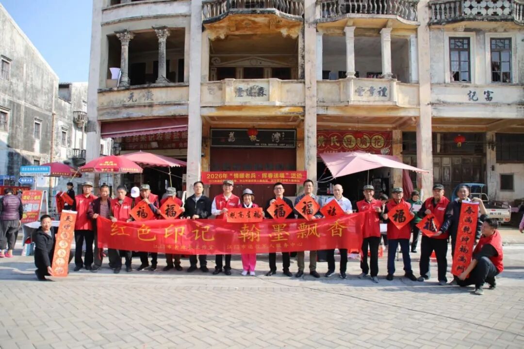为弘扬中华优秀传统文化,展现退役老兵“退伍不褪色,退役不褪志”的精神风貌,近日,江门市退役军人事务局、退役军人服务中心组织江门市老班长工作室的老兵书法家们,赴台山市端芬镇梅家大院,联合台山市退役军人事务局共同开展以“红色印记,翰墨飘香”为主题的“挥春送福”暨慰问退役军人活动,用笔墨传递祝福,用关怀送上温情,携手军民共贺新春将至。