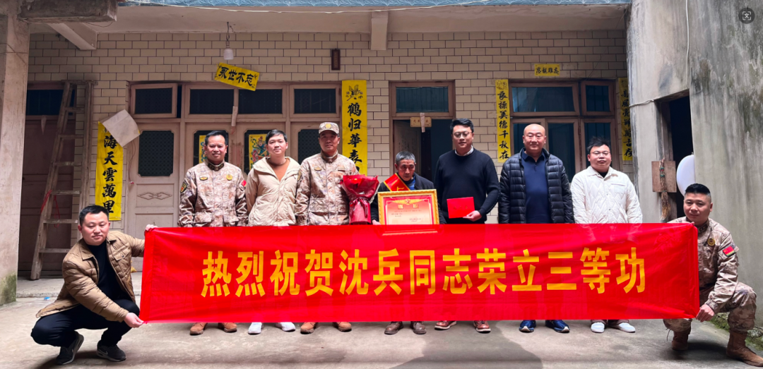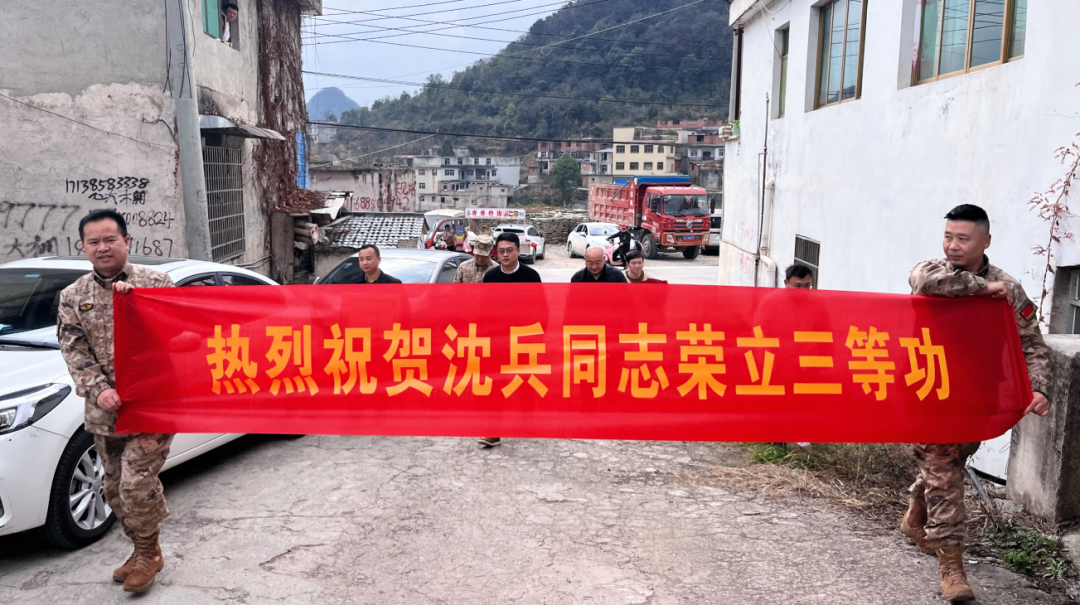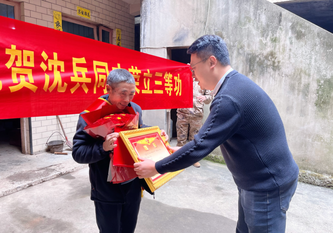 随后,“报喜团”前往贵安新区党武街道翁岗村四组,为荣立服务保障三等功的沈兵同志家属送上喜报。慰问组与家属围坐交谈,感谢他们为国家培养了优秀人才。沈兵父亲激动地说:“孩子能在部队获得荣誉,离不开组织的培养。我们会继续支持他安心服役,为国防事业作贡献!”