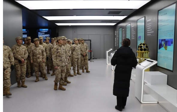活动当天,官兵们首先来到城市客厅A区,通过影像资料和讲解员的详细介绍,系统了解了怀柔科学城的规划理念、发展历程与未来蓝图。作为北京国际科技创新中心的核心承载地,科学城聚焦物质科学、信息智能、生命健康等重点领域,其宏大的布局与前瞻性的设计让官兵们深感震撼。