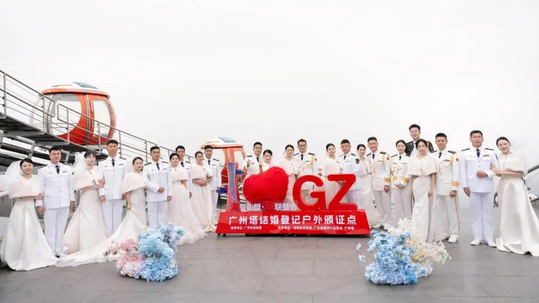 近日,广州塔云端之上,广州市海珠区退役军人事务局携手区民政局、驻区部队举办“海誓山盟·珠塔舰证”集体婚礼。12对军人伴侣在450米高空的广州塔顶,以城市之巅为证,许下“执子之手、与子偕老”的深情誓言。面向万家灯火,致以“海不扬波、家国永安”的美好祈愿。