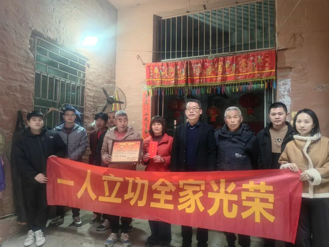 新春将至,年味渐浓。为大力弘扬拥军优属光荣传统,营造“一人立功、全家光荣”的浓厚社会氛围,1月22日至23日,晋江市人武部、晋江市退役军人事务局联合开展“喜报迎新春 情暖军属心”送立功喜报活动,晋江市退役军人事务局党组成员、副局长陈达森、一级主任科员余春华,人武部副部长颜闽亮及有关镇(街道)武装部、退役军人系统分管领导参加送喜报活动。