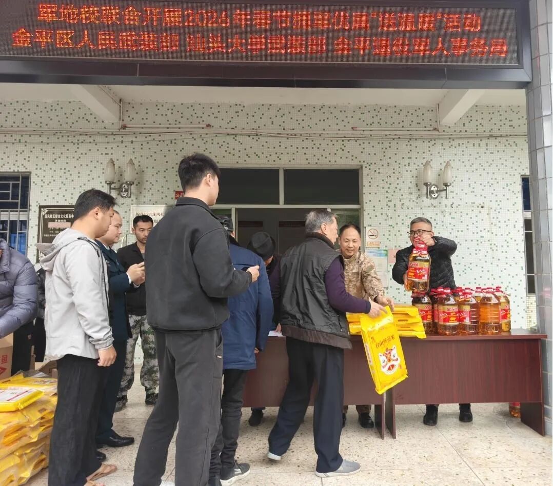1月22日下午,汕头市金平区退役军人事务局联合区人武部、汕头大学武装部,走进“百千万工程”挂钩点鮀莲街道莲风社区,开展2026年春节拥军优属“送温暖”活动,向辖区退役军人、现役军人家属及其他优抚对象致以新春的美好祝福,送去党和政府的关怀与温暖。