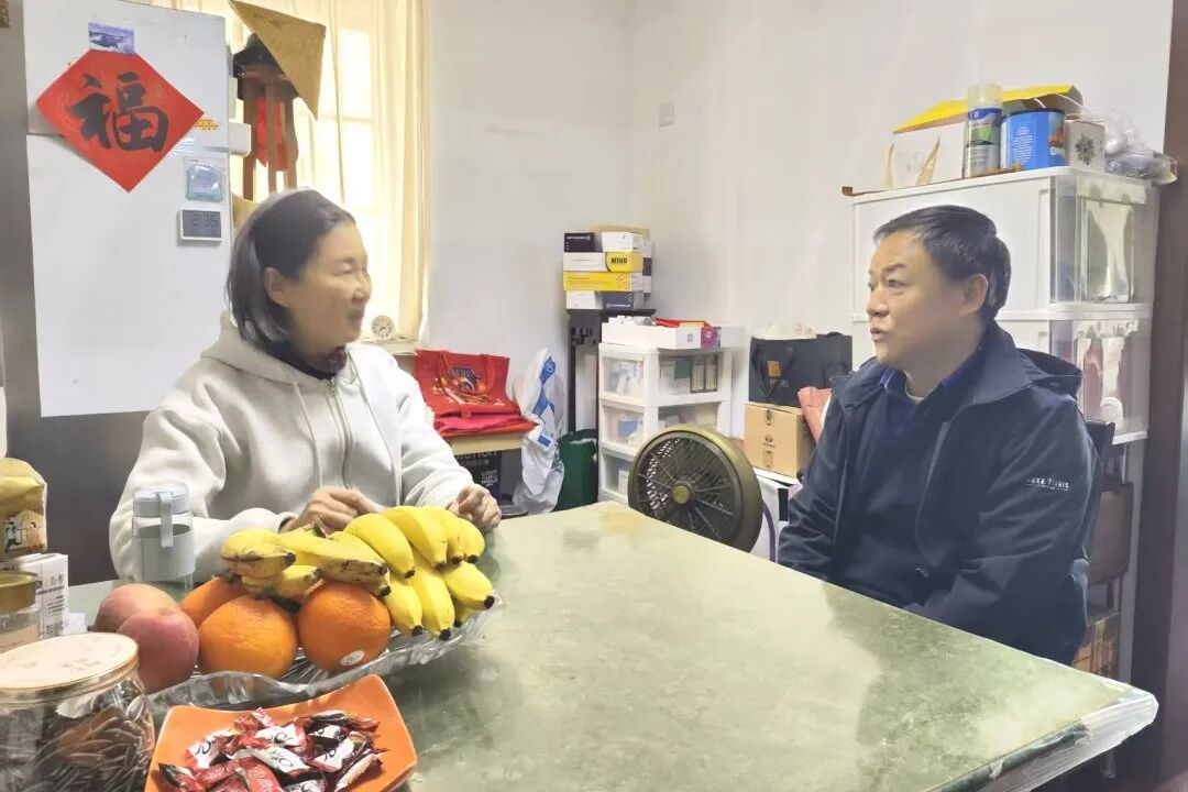随后,来到自主择业干部家中。刚一落座,陶宝辉副局长就与自主择业干部拉起了家常,详细了解她的就业情况、家庭生活状态以及当前存在的需求。作为自主择业干部,她脱下军装后依然保持着军人的优良作风,在新的人生赛道上积极打拼,用实干诠释着退役军人“退役不褪色、转业不转志”的初心本色。自主择业干部代表对组织的关心表示衷心感谢,她说:“虽然离开了部队,但组织的关怀从未间断,这让我更有信心在新岗位上继续发光发热。”陶宝辉副局长表示,徐汇区退役军人事务局始终是自主择业干部的“娘家人”,会持续搭建服务平台,为大家保驾护航,让每一位退役军人都能感受到归属感和幸福感。