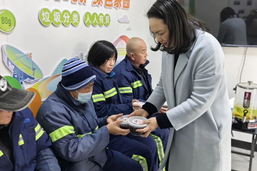 清晨的寒风卷着冬日凉意,环卫工人已早早穿梭在社区的街巷角落,以默默坚守与辛勤付出,守护着辖区的洁净与整洁。由上海市“最美退役军人”、娄塘社区退役军人志愿服务队队长周丽带领退役军人志愿者们为这群寒冬里的“城市美容师”送上热气腾腾的腊八粥与节日祝福:“你们辛苦了,腊八节快乐,快趁热喝碗粥暖暖身子!”志愿者们将一碗碗熬煮得软糯香甜的腊八粥递到环卫工人手中,细致叮嘱大家户外作业时做好保暖防护、注意安全。