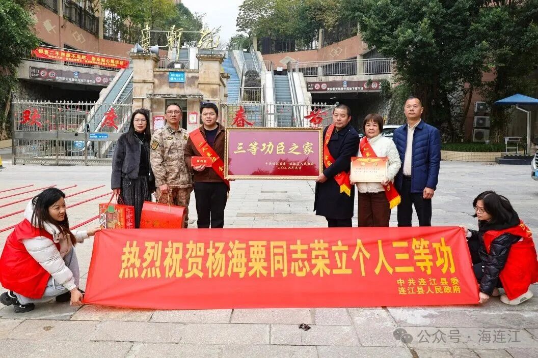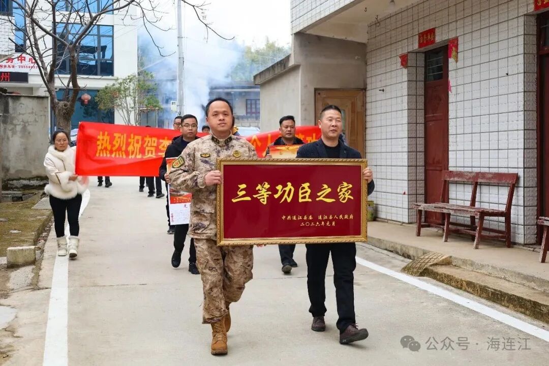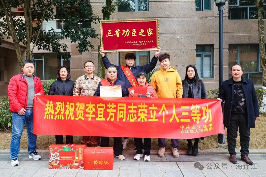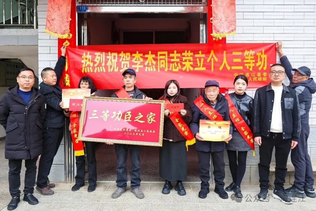 “立功喜报到家啦!”2月2日,福州市连江县退役军人事务局与相关乡镇工作人员组成“报喜团”,为李杰、黄星鸿、杨海粟、李宜芳等4位立功军人家庭送去喜报,让军人军属共享荣光。
