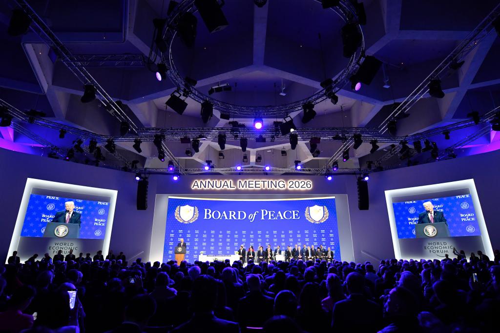 1月22日,美国总统特朗普在瑞士达沃斯举行的世界经济论坛2026年年会上签署文件,启动所谓“和平委员会”。新华社记者连漪摄