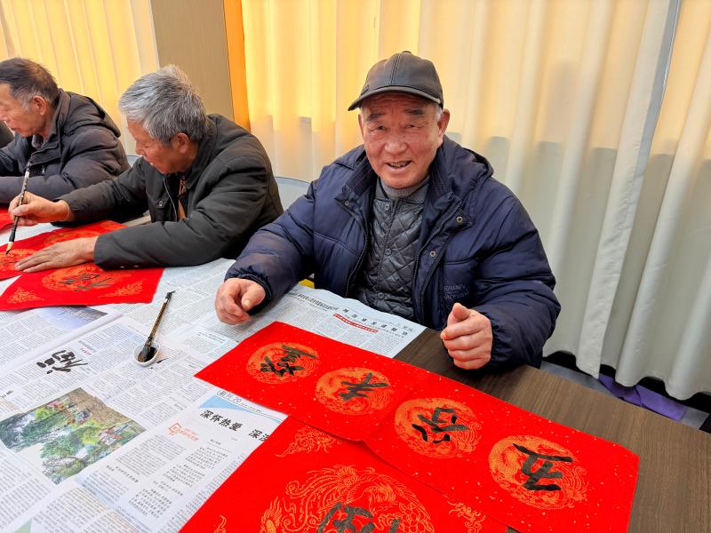 随后,“春联寄福”环节热闹开启。老兵们围坐在一起,挥毫泼墨、书写春联与福字,一笔一划间,既有对新春的美好期盼,也有对家国安宁的赤诚祝福。大家相互交流书写技巧,展示自己的作品,欢声笑语不断。